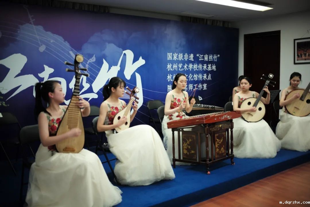 “江南丝竹”是流行于江浙沪一带的一种民间器乐合奏形式,音乐风格小、轻、细、雅,是江南文化的特定产物。2008年,杭州申报的“江南丝竹”被列入国家级非物质文化遗产扩展名录。2013年4月,杭州艺校成为“江南丝竹”的保护单位,2019年10月成为杭州市非遗传承教学基地。